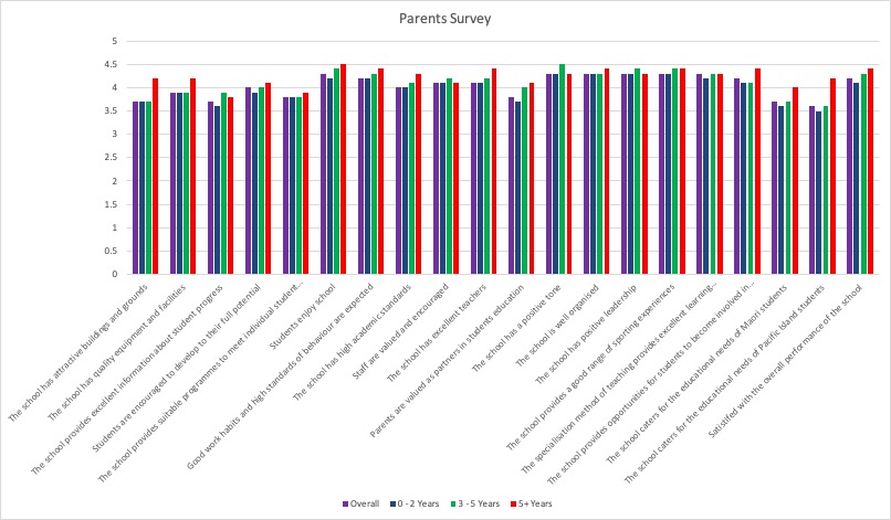 Parents Survey – breakdown by years been associated with Ponsonby Intermediate School